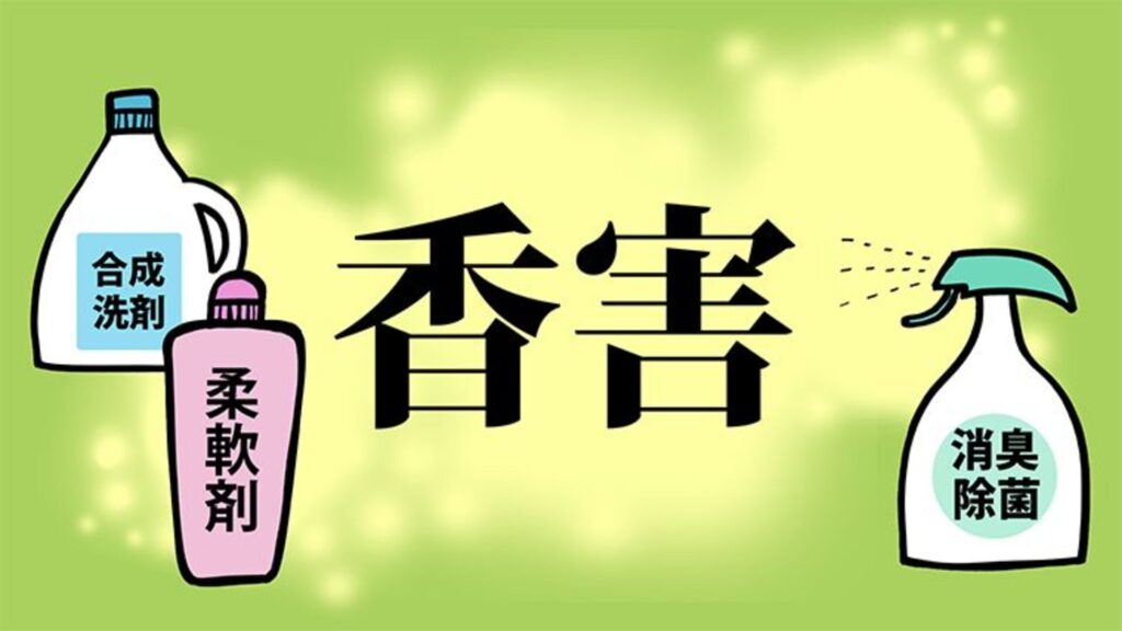 香害とは、香りや抗菌・消臭成分などを長続きさせる柔軟剤や合成洗剤など、他人が使った日用品により受ける健康被害のことです。効果を長続きさせるマイクロカプセルの使用で被害が拡大しました。原因は香りや抗菌・消臭成分だけでなく、主成分である合成界面活性剤や添加剤などの複合影響と見られます。複数の人が通常の生活を送れないほどの健康被害を受ける事象、公害です。